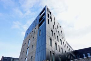 The consented scheme provided the new permanent accommodation for the school, totalling 6,562 m2 of gross internal floor area over five floors of the development (including a basement), alongside a separate police counter at ground floor, and nine private sale residential apartments, sitting over the rear part of the school building, comprising of 1- and 2-bedroom dwellings, with their own separate access point at ground level.