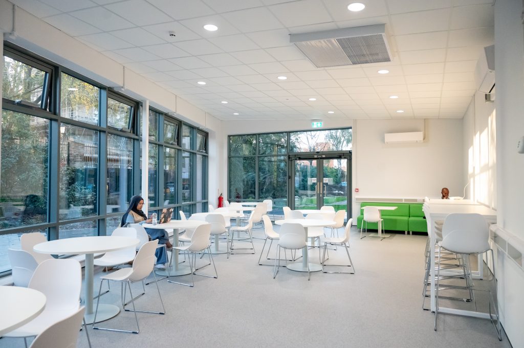 The project was delivered in phases whilst the college remained operational. By April 2022, students moved into new classrooms on the second and third floors. The transformed campus now features a welcoming glass-fronted café, multi-use community hall, refurbished science labs, computer rooms, art studios, an enterprise hub, and soundproofed radio studios.