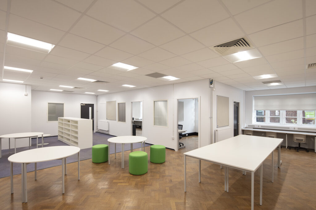 Our Technical & Planning Team oversaw the delivery of the full contracted works with Morgan Sindall and Mace. This was completed in phases while the college remained on site, so effective stakeholder engagement has been critical to ensuring that teaching can continue both safely and effectively. In April 2022, the sectional completion of the second and third floors of the site was achieved, and the college moved up from the ground and first floors into new classrooms. On 28 October 2022, the refurbishment of the ground and first floors was completed.
